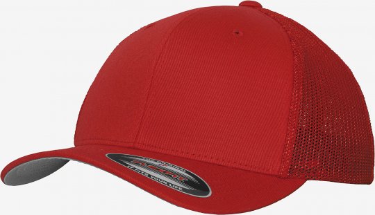 Patentiertes Flexfit Trucker Mesh | Komfortable Passform | Stabiles inneres Frontpanel | Silberne Schirmunterseite | Acht Stickreihen auf dem Schirm